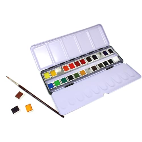 Paul Rubens konstnär akvarellfärg set, 24 livfulla färger i bärbar låda, hög transparens, bra ljusbeständighet, perfekt resa professionellt vattenfärg set för konstnärer, nybörjare, vuxna