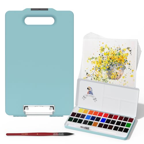 MeiLiang Resor akvarellfärg-set, akvarellfärg-set innehåller 36 färger solida akvarellfärger + 50 % bomull akvarellpapper (20 ark) + 1 akvarellpensel + grön handhållen organisatör