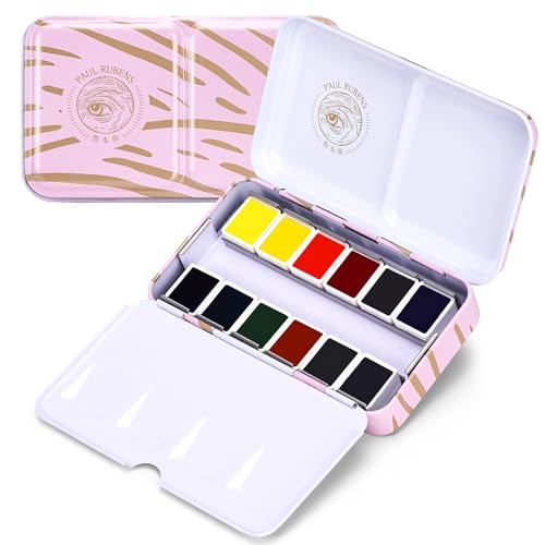 Paul Rubens konstnär-akvarellfärg-set, 12 levande färger i bärbar låda, hög transparens, utmärkt ljusäkthet, perfekt professionellt reseakvarellset för konstnärer