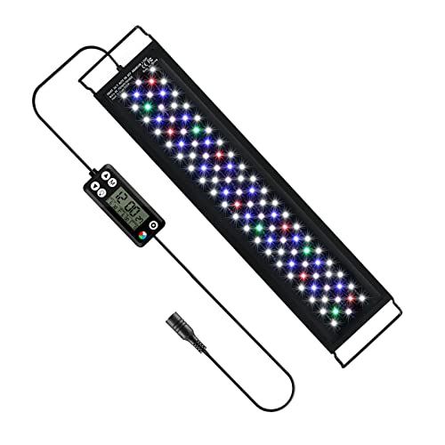 hygger LED-akvariebelysning, 48 W, komplett spektrum, med LCD-inställning, Sunrise Sunset Moon och DIY, justerbar timer, 7 färger, för 61–91 cm akvarium