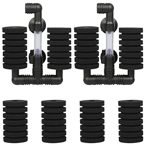 GZkushi 2 stycken svampfilter akvarium set, luftlyftare akvariefilter för biologisk och mekanisk filtrering, med 4 reservsvampar
