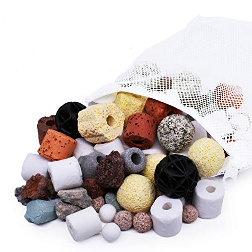 KAIISSA Filter för akvarium, akvariefilter, keramiska ringar, biografibollar, poröst filter, biokemiska kulfiltreringsmaterial för akvarium, akvarium, akvarium, vattenfall, fontän (20-i-1, 500 g)