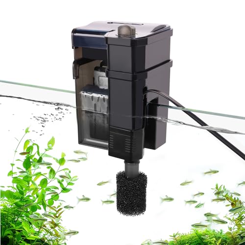 Hygger Hang On filter akvarium, 300 L/H 5 W fisktankfilter, ultratyst akvariefilter med dubbla lager filterkammare, justerbart vattenflöde hängande on filter för 15–80 l tankar