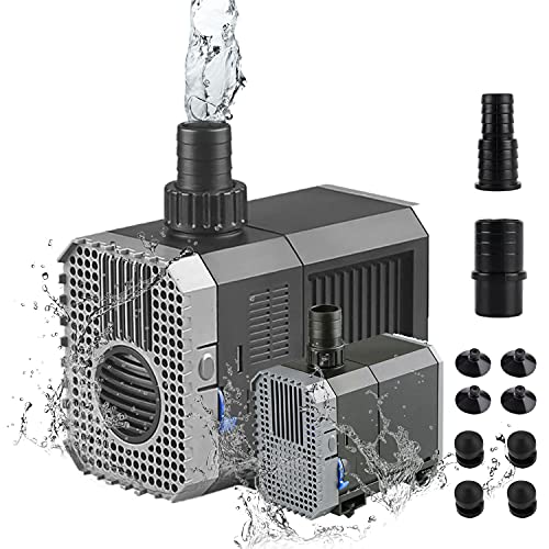 SWAWIS Pump akvariepump 30 W dammpump 2 000 L/H justerbar räckvidd amfibia med filter och 4 munstycken för akvarium, dammar, fontäner