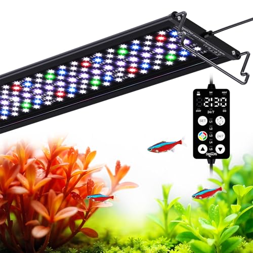 SEAOURA Akvarium Belysning 120-137cm, LED Full Spektrum Timer DIY 24/7 Minne 8 Färger och 20 Nivåer Justerbar Stativ Växttillväxt
