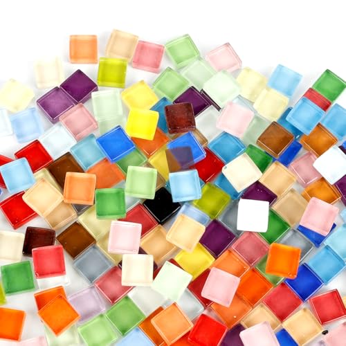 500G glasmosaikplattor färgglada mosaikplattor gör-det-själv glas mosaik fyrkantiga plattor för fotodekoration, blomkrukor och akvarium mosaikplattor konst hantverk