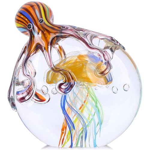 EUSTUMA Handblåst glas bläckfisk statyett prydnad, havsdjur prydnad för akvarium akvarium, havsdjur samling för födelsedagspresent, glas kontor pappersvikt för skrivbordet.