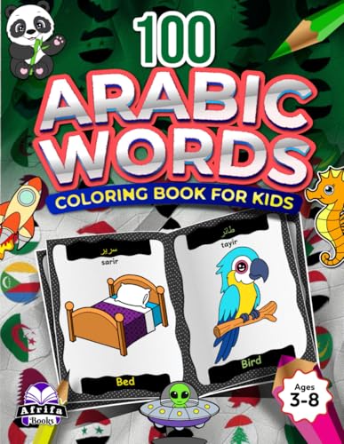 100 Arabic Words Coloring Book, Color and Learn Arabic Vocabulary for Kids Ages 3-5, 6-8, Bilingual Books for Children (English and Arabic): kutab ... lil'atfal (al'iinjiliziat walearabiati)