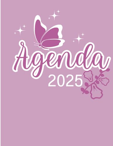 Calendario semanal y mensual 2025, enero a diciembre, 8.5 x 11", cubierta flexible, encuadernado con alambre | En morado con detalle de mariposa | ... funcional para alcanzar tu objetivos en 2025