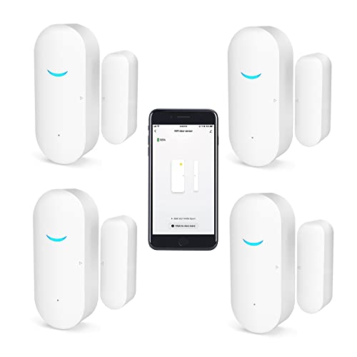 SENCKIT WiFi-dörr- och fönstersensorer, Tuya Smart Alarm med gratis avisering APP-kontroll hemsäkerhetslarmsystem, ingen hubb krävs, kompatibel med Alexa, Google Home (4-pack)