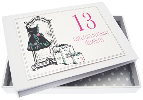 Vita bomullskort 13-årsdagen, litet album, liten svart klänning