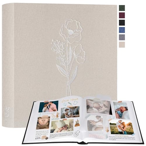 Lanpn Scrapbooking fotoalbum, stort linne gör-det-själv album 100 vita sidor med cellofanavdelare, för foton 9 x 13 cm 10 x 15 cm 13 x 18 cm (beige, 30 x 33,5 cm)