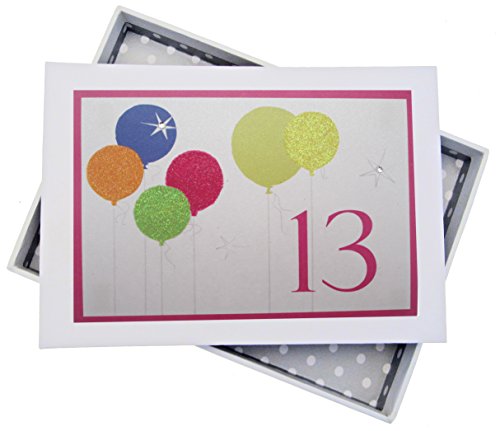 White Cotton Cards album med neon glitter 13. Födelsedag luftballonger, vit,