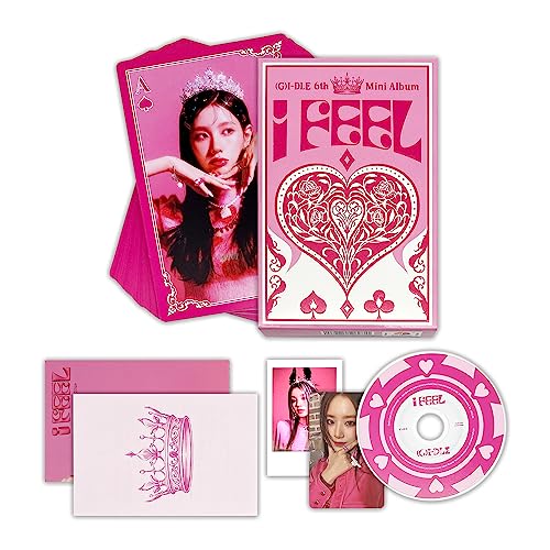 (G)I-DLE - 6th Mini Album [I feel] (QUEEN Ver.) Playing Card + Lyric Paper + CD & Holder + Photo Card + Polaroid + Mini Poster + 2 Pin Button Badges + 4 Extra Photocards