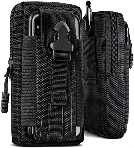 ONEFLOW Survival Case kompatibelt med Alcatel One Touch Pop C9 – Mobiltelefonbältesväska av nylon med karbinhake, taktisk EDC-väska med bälteshållare, utomhus mobiltelefonfodral – svart