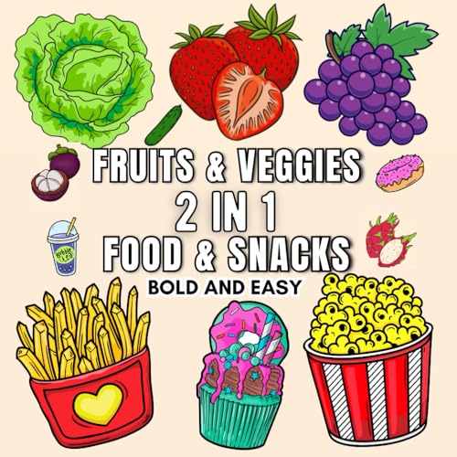 Fruits and Veggies ( 2 in 1 ) Snacks and Food Coloring Book | An Adult Coloring book for Women, Men, Teen & Kids .: 85+ Bold and Easy Design Coloring Book for Alcohol Markers, Coloring Pencils .