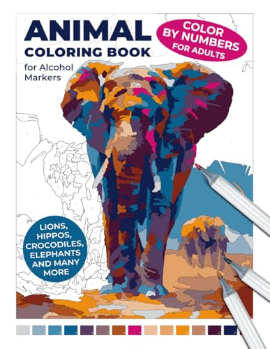 Animal Coloring Book for Alcohol Markers | Color by Numbers for Adults | Lions, Hippos, Crocodiles, Elephants, and Many More: A Journey to Relaxation: African Wildlife Color Therapy