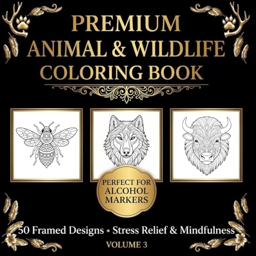 Premium Animal Coloring Book for Alcohol Markers: 50 Realistic Wildlife Designs with Black Back Pages, Bold Lines, Anti-Bleed 8.5x8.5 Safari Nature ... | Large Format Premium Paper | Adults & Teens
