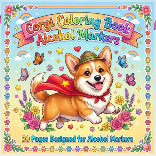 Corgi Coloring Book Alcohol Markers: 50 Cute Corgi Line Art Pages Designed for Alcohol Markers – Single-Sided, 8.5" x 8.5", Bold Outlines for Easy Coloring