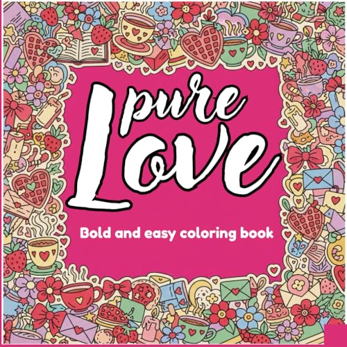 PURE LOVE VIBES: Bold and Easy Coloring Book for Adults and Teens: Simple Large Print Hygge Valentine Designs for Stress Relief, Relaxation, and Alcohol Markers