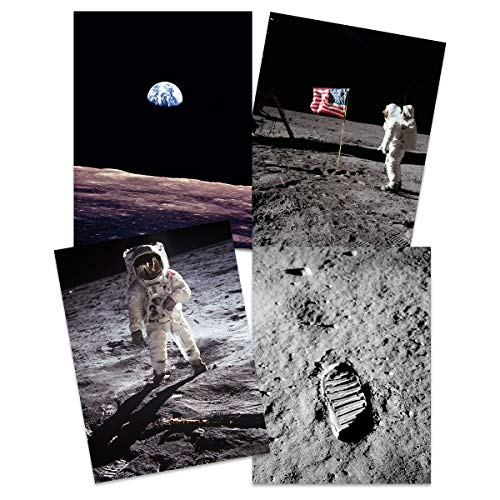 Wee Blue Coo Apollo 11 astronaut aldrin armstrong 50-årsjubileum måne landning saturn V raket väggkonst tryck affisch heminredning premium förpackning med 4 måne raket vägg hem dekoration