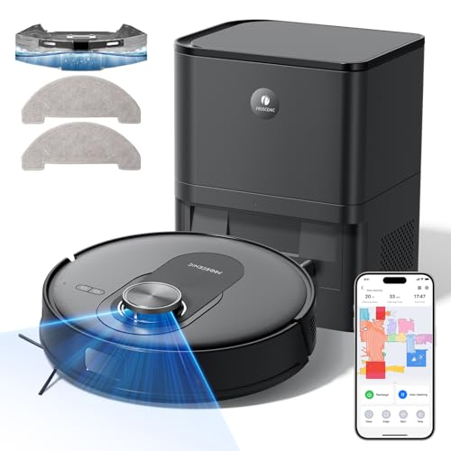 Proscenic Tvättrobotdammsugare med station 6000Pa,Q8 MAX Lidar navigeringsrobotdammsugare med flerstegs kartografi, App/Alexa/Siri/IFTTT-anslutning, 200 min för djurhårmattor hårda golv