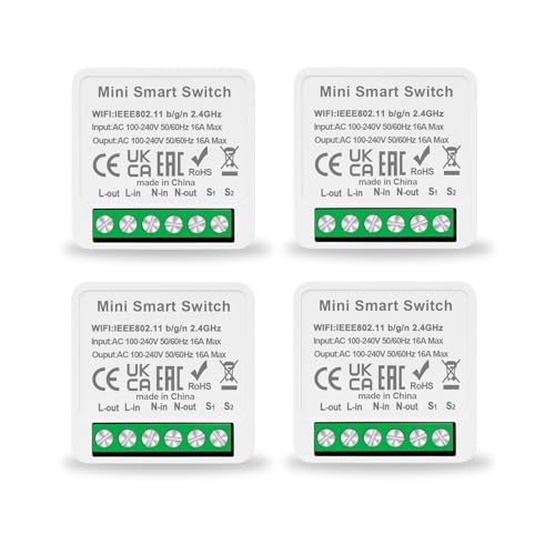 Vmxlso 4 stycken smart strömbrytare modul – smarthome kompatibel med Tuya App, Alexa och Google Home – mini WLAN smart brytare, neutral ledare krävs, passar bakom väggströmbrytare