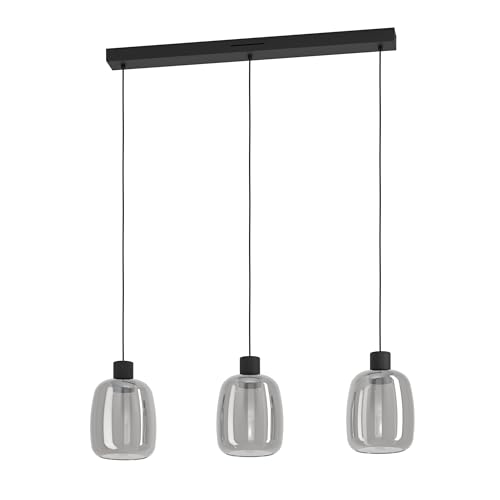 EGLO connect.z Molochio-Z Smart-Home LED-pendellampa, 3 ljuskällor, svart metall och rökglas, ZigBee-kompatibel, Alexa-app- och röststyrning, varm- till kallvit, RGB, dimbar