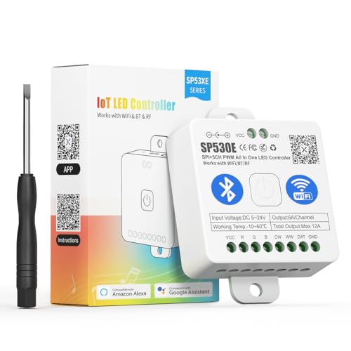 RGBWW LED-kontroll, 5-i-1 WIFI RF 2.4G fjärrkontroll som används för RGB RGBW RGB+CCT färgtemperatur eller enkel färgremsa med Alexa/Google Assistant, app/röstkontroll (WT5)