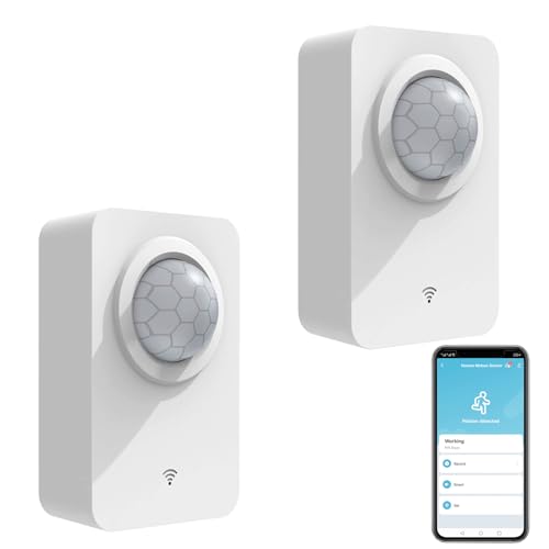 Smart rörelsesensor, WiFi infraröd rörelsesensor med avtagbart stativ, trådlös rörelsedetektor med batteri och USB-driven, kompatibel Alexa App-bildskärm. 2 st