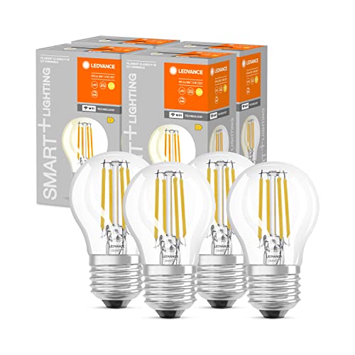 LEDVANCE Smart LED-Lampor med Wifi teknik, E27-sockel, dimbar, varmvitt (2700K), teardroppform, klar glödtråd, ersätter traditionella 40W glödlampor, kontrollerbar med Alexa, Google & App, 4-pack