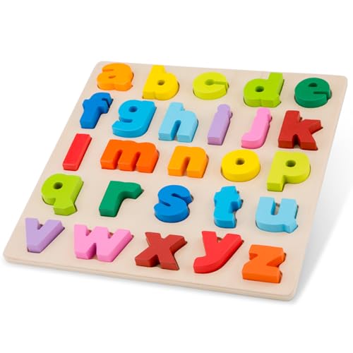NIWWIN Alfabet pussel, trä alfabet pussel ABC 2 bitar, alfabet nummer form pussel småbarn leksak, pedagogisk förskola lärande bokstav nummer form leksak 3-12 år.