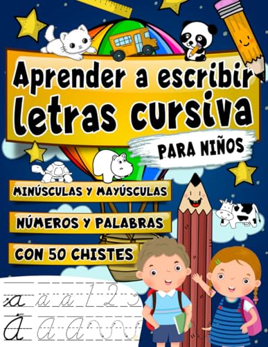 Aprender a escribir letras cursiva para niños: Cuaderno de Práctica de Caligrafía Cursiva con Chistes, alfabeto minúsculas y mayúsculas, palabras, ... (Caligrafía Divertida Con Pauta Montessori)