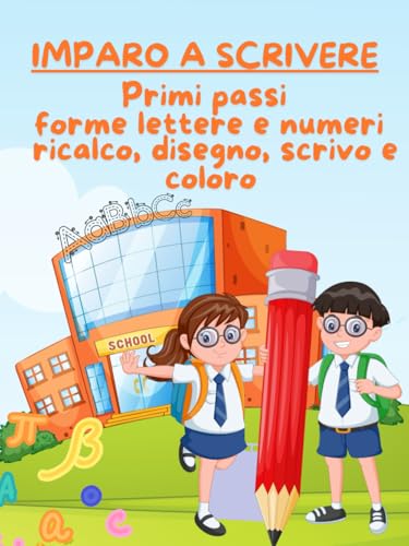 IMPARO A SCRIVERE: PRIMI PASSI: LETTERE, NUMERI E FORME libro per bambini età 3+ scrivere| ricalcare e colorare| lettere, numeri e forme| alfabeto e i numeri fino a 10