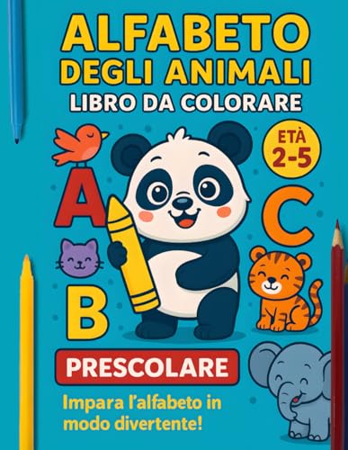Alfabeto degli Animali - Libro da Colorare: Libro da Colorare per Bambini di 2-5 Anni in età prescolare. Divertente ed Educativo con Lettere e Amici Animali.