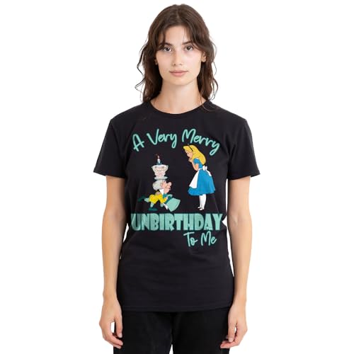 Alice i Underlandet väldigt glad Unbirthday to Me dam t-shirt, svart, X-Large, Svart, XL