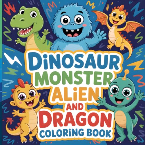 Dinosaur, Monster, Alien, and Dragon Coloring Book: Mythical Coloring Pages For Kids Ages 4-8 years With Bold and Easy Coloring Designs Perfect for Your Children
