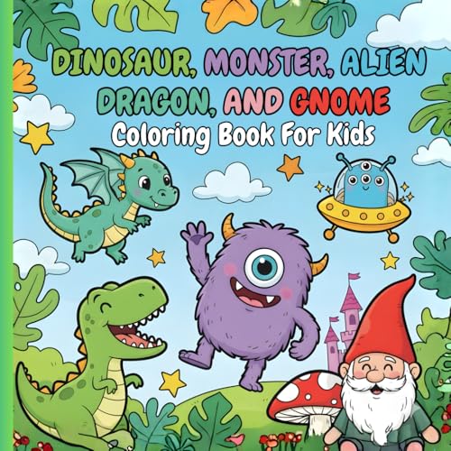 Dinosaur, Monster, Alien, Dragon, And Gnome: Fantasy Coloring Book For Kids Ages 4-8 - Cute Childrens Books For Boys And Girls