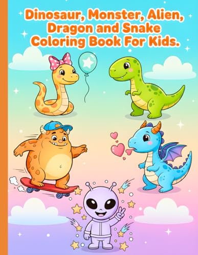 Coloring Book For Kids Girls Ages 4-8: Fantasy Gifts Dinosaur, Monster, Alien, Dragon and Snake