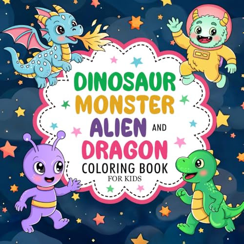 Dinosaur, Monster, Alien, and Dragon: Fantasy Coloring Book For Kids Ages 4-8