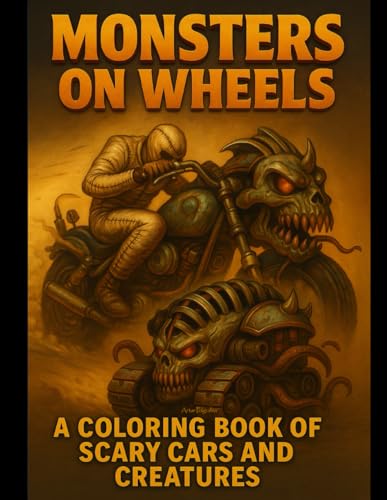 Monsters on Wheels: Creepy Creatures, Mutant Vehicles, Monster Cars, Horror Trucks, Alien Machines – Scary Coloring Book for Teens (12+) and Adults