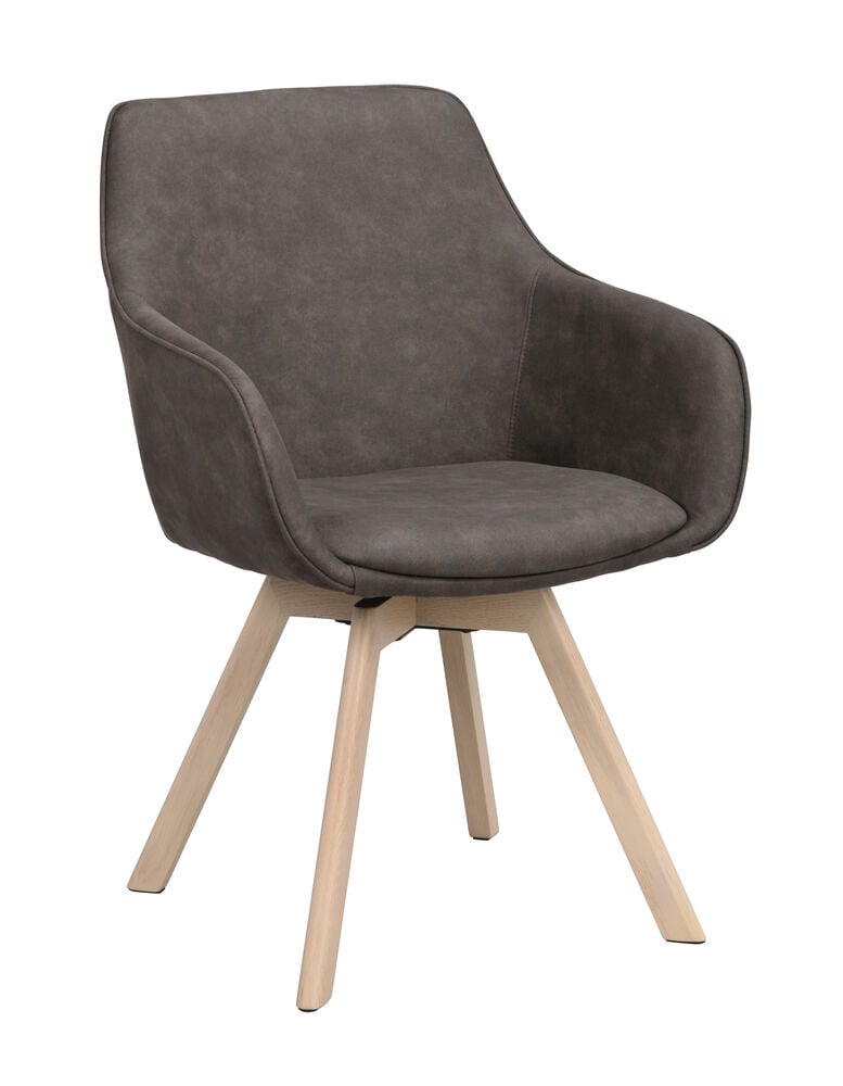 Alison karmstol mörkgrå microfiber/ekben snurr
