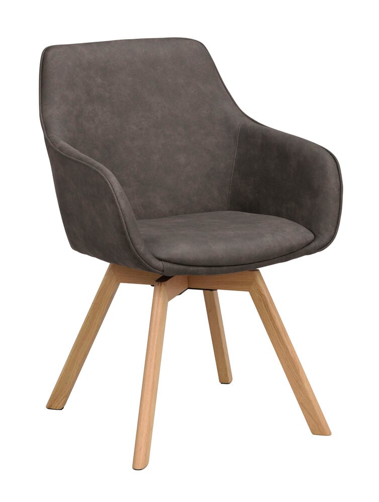 Alison karmstol mörkgrå microfiber/bruna ekben snurr