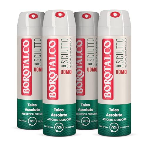 Borotalco, Deodorant Herr Torr Original Spray med Absolut Talk, Svettabsorberande, Utan Alkohol, Pulver Parfym, 72 h Effektiv - 4 stycken 150 ml - Amazon Exklusiv