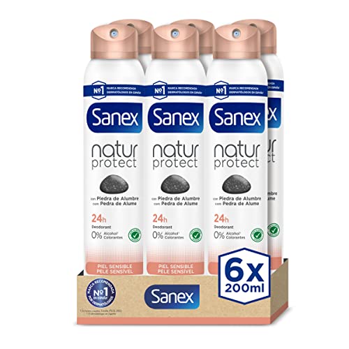 Sanex Mineral Protect Deodorant Spray, 6-pack x 200 ml, 48H-skydd mot dålig lukt, med almsten, 0% alkohol, inga allergener och färgämnen, känslig hud