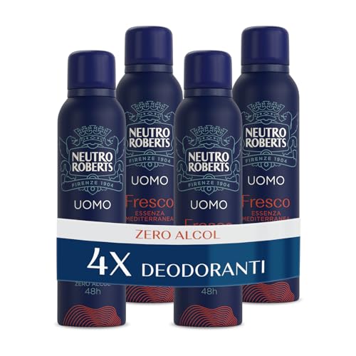 Neutro Roberts, Deodorant Spray Medelhavet Essens Män Med Luktfri, Noll Alkohol, Med Ren Glycerinolja, Deodorant Män, Dermatologiskt testad, 48 h - 4 stycken 150 ml