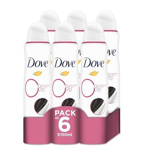 Dove Deodorant spray 0% original, alkohol- och aluminiumsaltfri, med fuktgivande och skonsam formel, torr hud i upp till 48 timmar, deodorant för män och kvinnor, 6 stycken på 150 ml