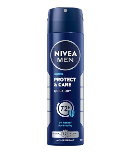 NIVEA MEN Protection & Care Spray i 6-pack (6 x 200 ml) herrdeodorant med maximalt skydd 48 timmar antiperspirant spray herrvård 0% alkohol