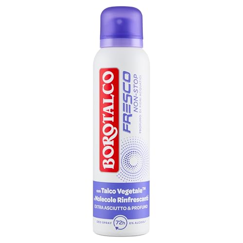 Borotalco, Fresco No stop Spray Deodorant - Vattenblommor, med vegetabilisk talk och uppfriskande molekyler, färsk formel med uppfriskande mikrokapslar, 72 h effektivitet, 0% alkohol, 150 ml