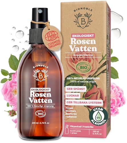 EKOLOGISKT ROSENVATTEN | Hydrolat av Damascenerrosor 100% Ren & Naturlig | Utan Tillsatt Alkohol, Utan Konserveringsmedel | Ansikte, Ögonkontur, Kropp, Hår | Rose Water | Glasflaska + Spray (200ml)